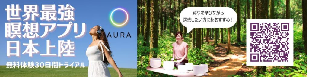世界800万ユーザーのいる海外人気瞑想アプリAuraの日本の誘導瞑想セラピストとしてもいくつかナオコも参加して投稿しています。30日間は無料ですので、ぜひお試しください。ナオコの瞑想以外にも日本のマインドフルネスの方々も参加されていますし、海外の方瞑想セラピストなど、いろんな瞑想を体験できるので超おすすめ。体験・詳細はバーナーをクリックまたはこちらからどうぞ。